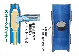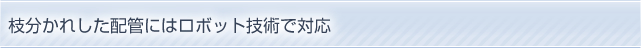 従来の工法では、配管の枝分かれ部分を施工するためには、管を切断しなければいけませんでした。しかし、当社の工法ならロボットを利用することで枝分かれした部分も内部から施工でき、管を切断する必要がありません。