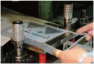 金型設計製作・各種プレス加工・3Dラミネート加工・加飾加工、の日研工業株式会社 日研工業は自動車・家電・携帯電話をはじめ、装飾部品など、個性を印象づけるパーツから、暮らしに欠かせないツールのプレス金型、設計製品及びプレス加工を行っています。 特にネームプレート金型、エンボス金型、QDC金型、プレス金型は取引先様より高い評価をいただいています。 設計開発から、金型設計製作、そしてプレス加工まで一貫生産に対応。常に新しい技術で、「不可能を可能に」するために努力し続け、品質、納期、制度でお客様のニーズに応えます。 『金 型 部 門』 加工現場のノウハウを金型に生かす 放電加工機、ワイヤーカット放電加工機、マシニングセンタ、平面研削盤などを設備し、金型を内製しています。 プレス加工する材料は、鉄、アルミ、真鍮、銅、ステンレス等に、アルマイト、エッチング、メッキ等の表面処理が施されています。多種多様な特性を持つ材料に応じた金型を製作するには、プレスの加工現場で培ってきたノウハウが生きます。製品のほとんどが新規デザインになるため、蓄積してきた経験をふまえ、試行錯誤しながら金型製作に取り組みます。売り型では、薄物、高精度の金型を得意とし、ネームプレート金型、エンボス金型、QDC金型、プレス金型等に対応します。 ![]() 『プレス部門』 意匠性の高い製品を作る 150トンを頭に23台(内サーボ5台)のプレス機の他、フィルムを変形させながら打つ熱プレスを設備。金属やプラスチックの薄板に凹凸模様を与えるエンボス加工では、家電製品のスイッチ部分やオートバイのメーター表示部分など、意匠性の高い製品を生産しています。デザイナーの要求する質感、ボタンのクリック感など、感覚的な部分を追求し、微妙な加工を行います。多品種少量生産に対応し、製品によって加工法を自在に変化させるのがノウハウです。 ![]() 『3 D ラ ミ ネ ー ト ・ 加 飾 部 門』 最新技術を導入、新たな市場を開拓する、三次元表面加飾技術新導入 次世代整形技術の三次元表面加飾「TOM工法」に着目し、3Dラミネーター(真空成形機)を導入しました。 加飾は、自動車の内外装などに多く用いられる工法です。新技術の「TOM工法」は、他の工法では加工できないアルミやマグネシウム基材にも加飾可能で、シボ(皮、梨地、木目、布目等の模様)加工の微妙な質感を表現できます。デザイン性の高い意匠が可能になるため、自動車メーカー等で注目度が高まっており、いち早く導入に踏み切りました。現在、自動車用加飾部品への適用に向け、大手メーカーと共同開発を進めています。 本格的な始動に向け、クリーンルームも新設しました。今後へ向け、期待の持てる分野です。 ![]() http://nikkenkougyo.co.jp |