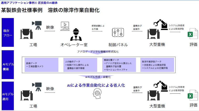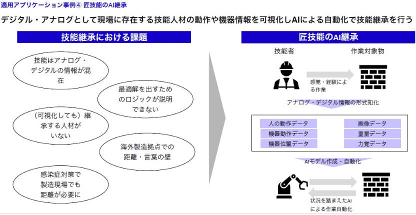 ロボット制御にAIを活用する事で、現場における作業員の技術継承とプログラミング工数削減を実現し、
