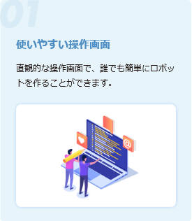 5,000社のRPA運用実績を持つディップが生み出した「使いやすい」「適正な価格」「充実なサポート」をコンセプトとしたRPA製品です。